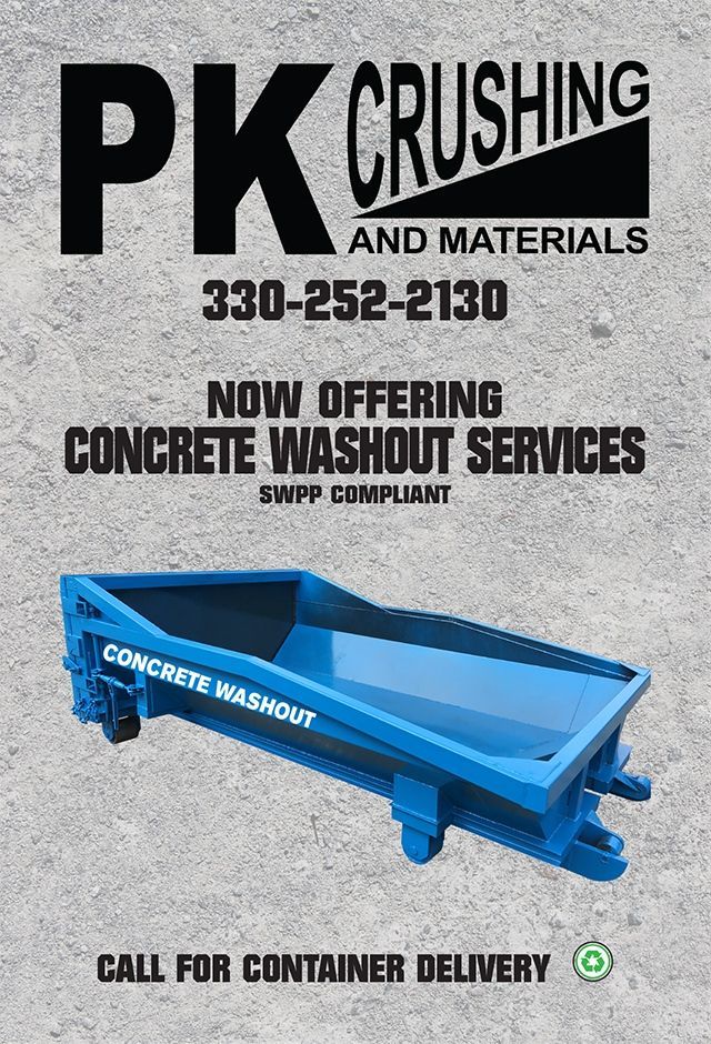 From Drop Off To Disposal – PK Crushing provides environmental-friendly Concrete Washout Services & Concrete Washout Rentals to safely dispose of contaminated water in Akron, Cleveland, and Columbus, Ohio.